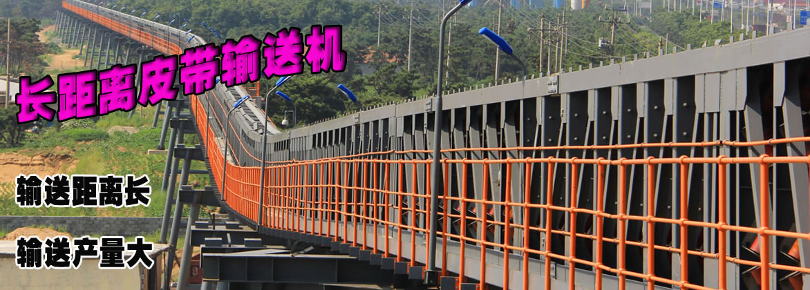 长距离皮带输送机其牵引构件和承载构件是一条环形胶带,胶带围绕在机架两端的传动滚筒和改向滚筒上,从而构成一个封闭的循环回路。当传动装置驱动传动滚筒回转时,通过传动滚筒与胶带间的摩擦力带动胶带运行;被输送的物料由导料槽添加至橡胶带上后,随着胶带的移动被运送到头部的卸料装置处,*后物料经卸料口卸下。